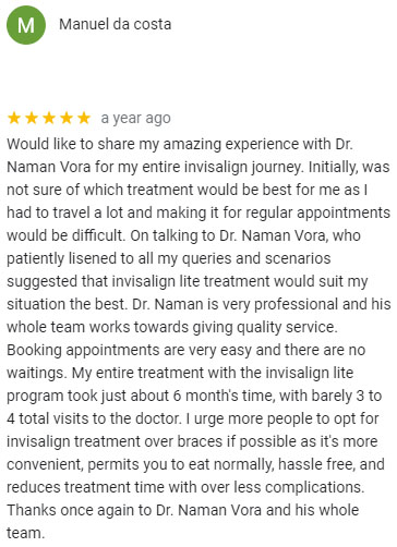NRI Patients shares his experience with Invisalign treatment by Dr. Naman Vora.