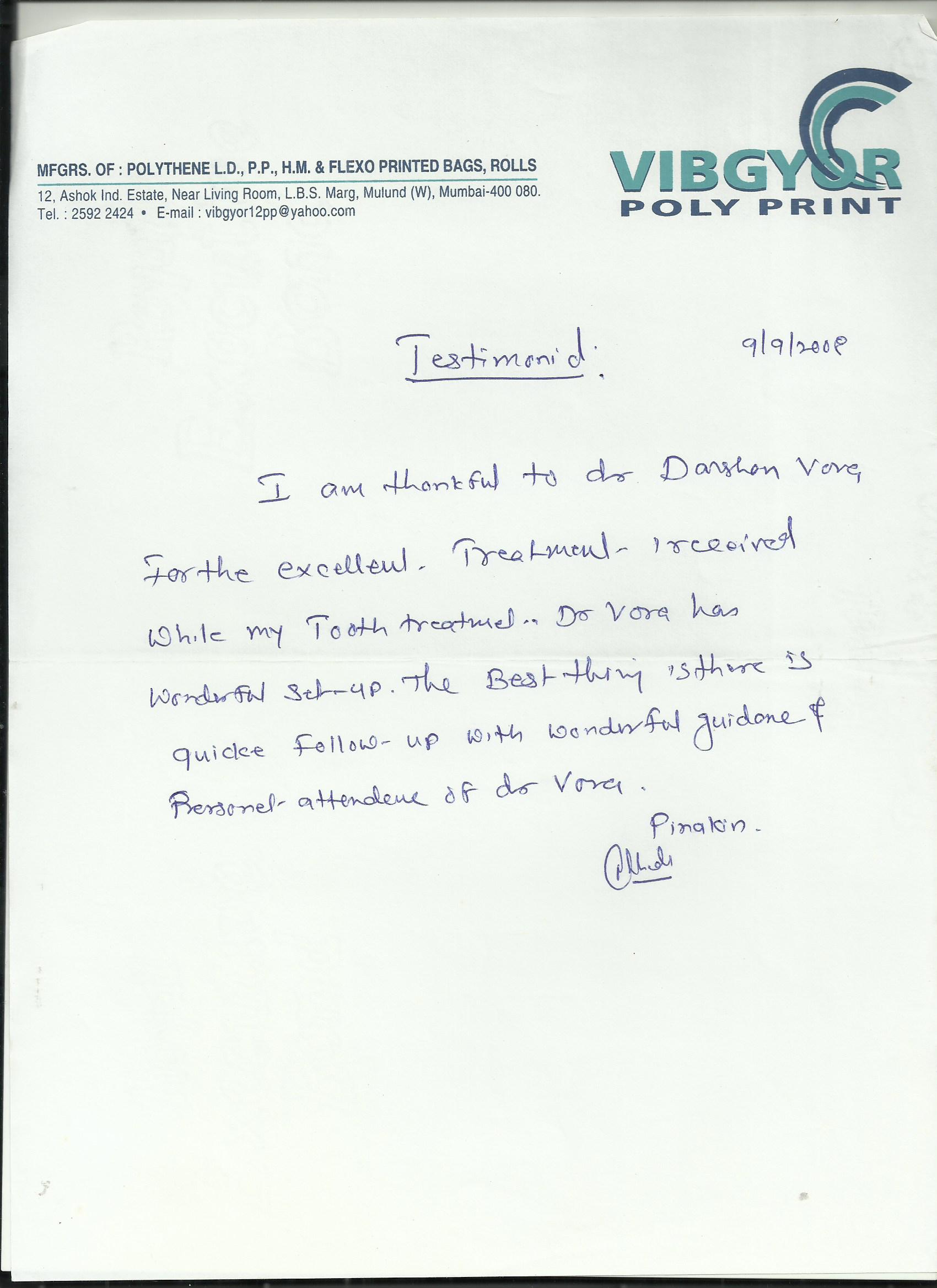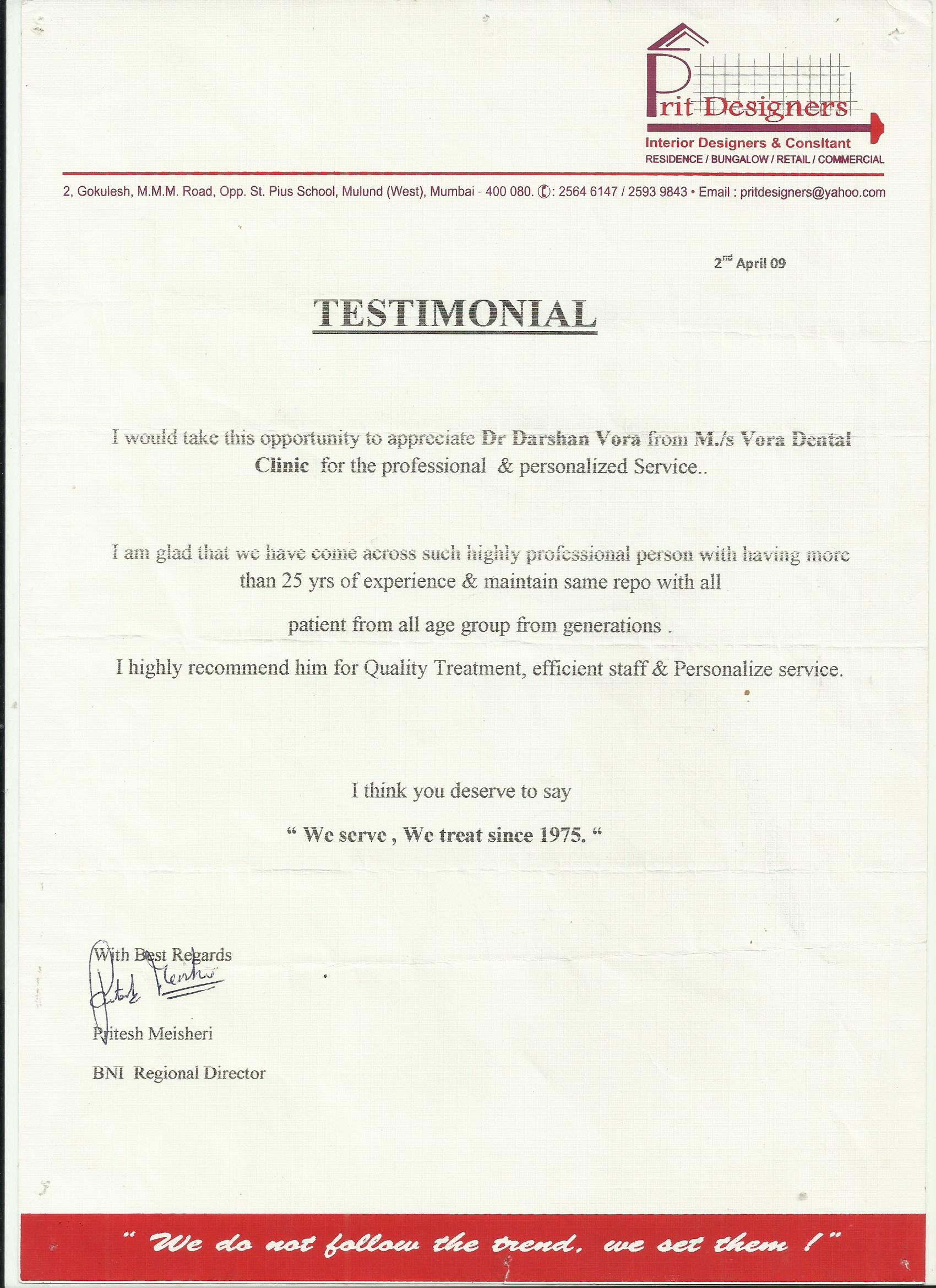 Written testimonials